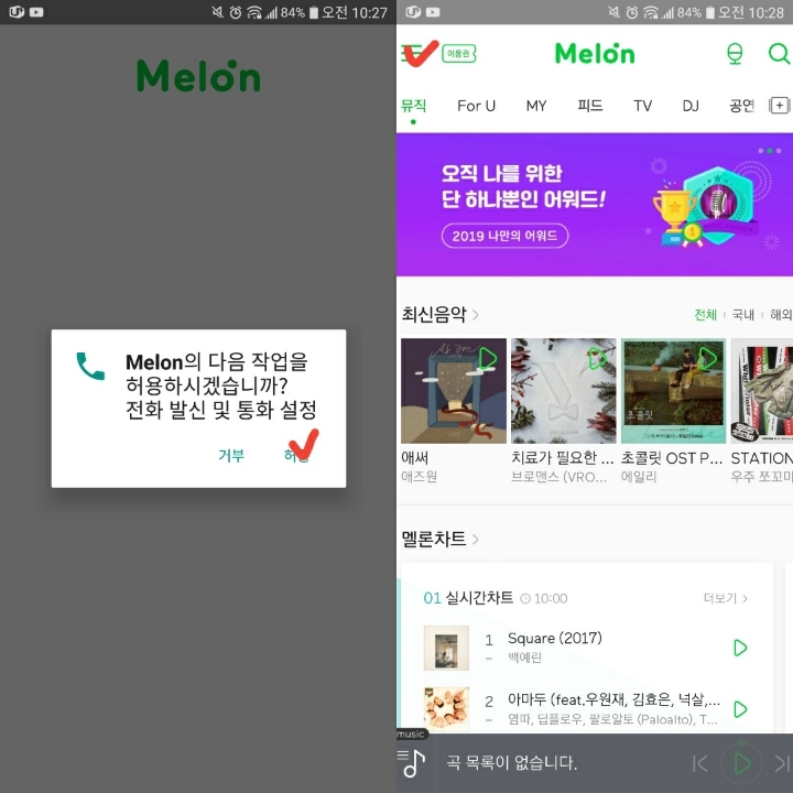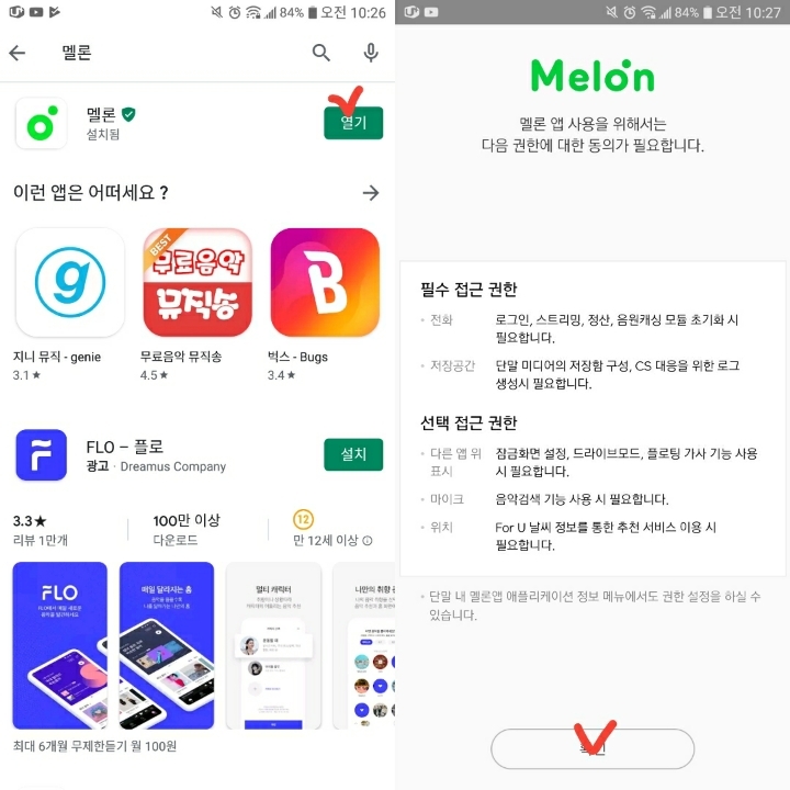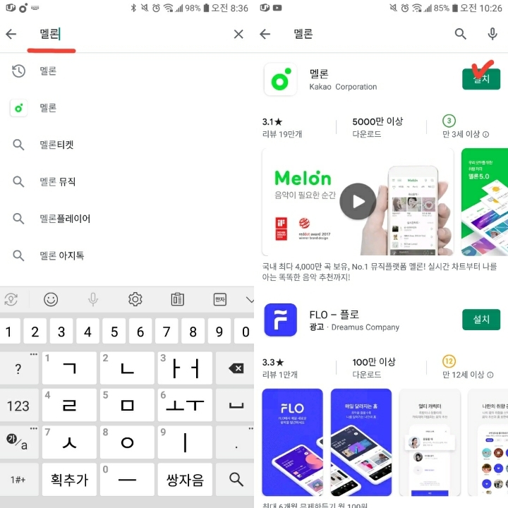1. play 스토어에 들어가셔서 멜론을 검색해서 앱을 설치해주세요.