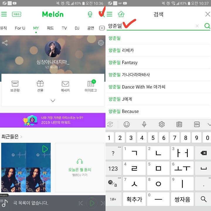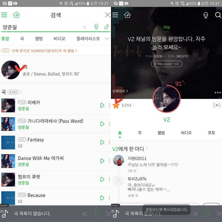 6. 검색하면 준일님 앨범이 뜹니다. 들어가서 ★ 팬맺기를 해주세요.