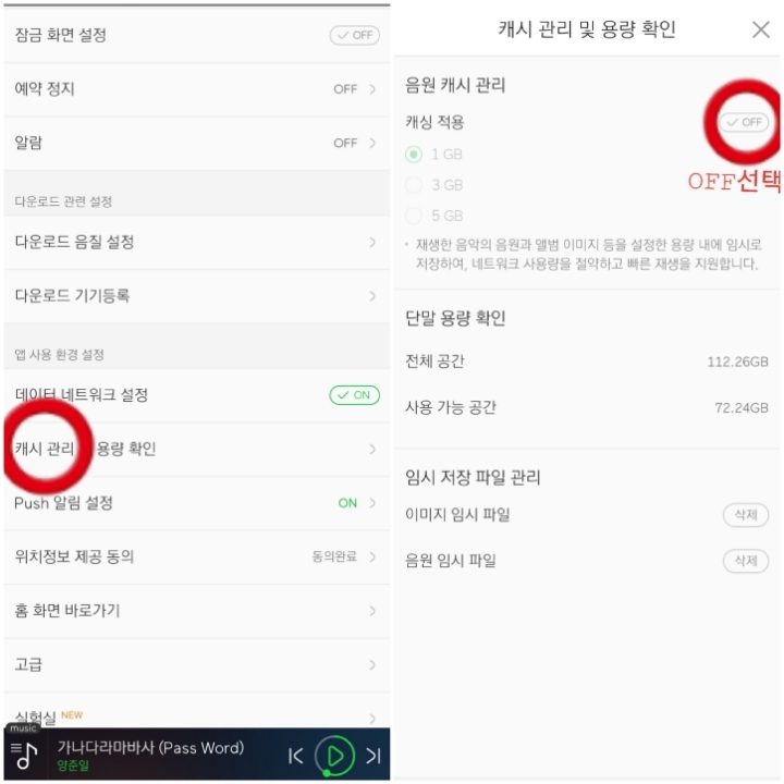9. 그리고 뒤로 뒤로 누르고 나오셔서 아래의 방법대로 캐싱을 off 해주세요.