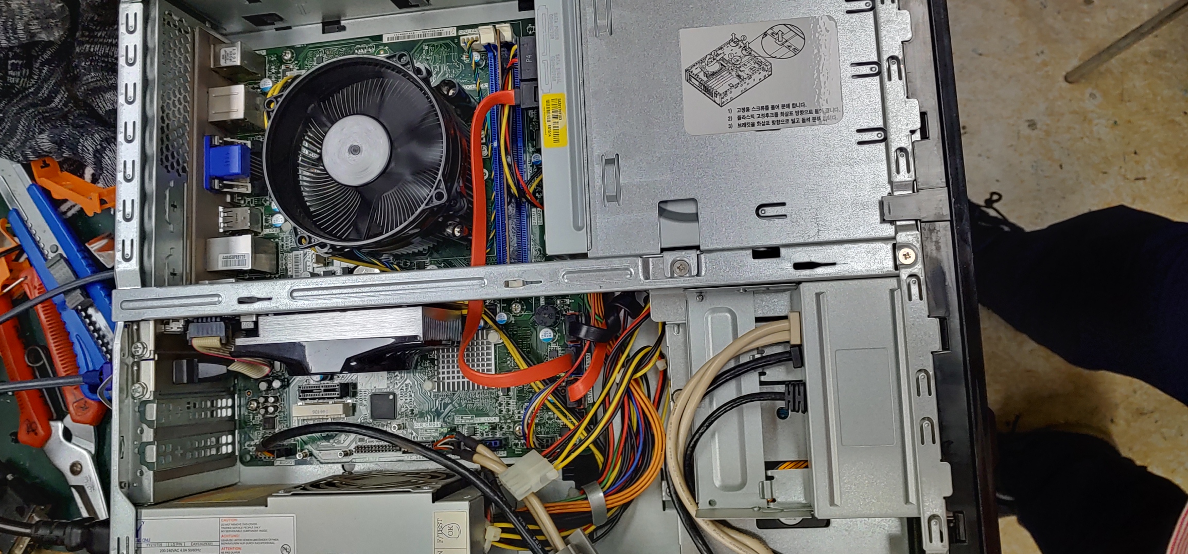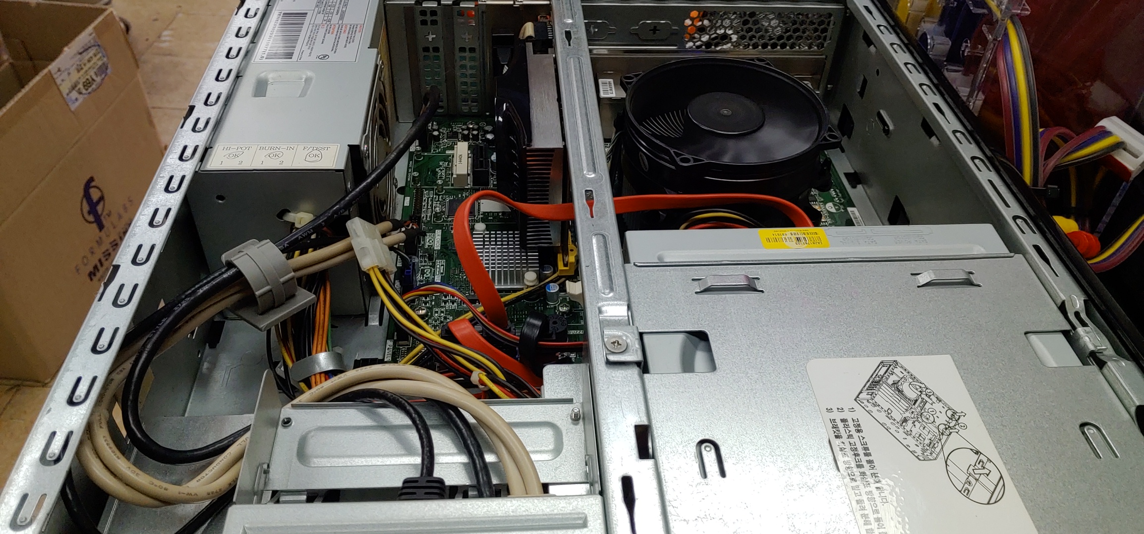 고객님 컴퓨터 내부 확인 이상없습니다.SSD와 HDD 같이 사용하시는데 HDD연결시 부팅문제가 생겨 제거합니다.