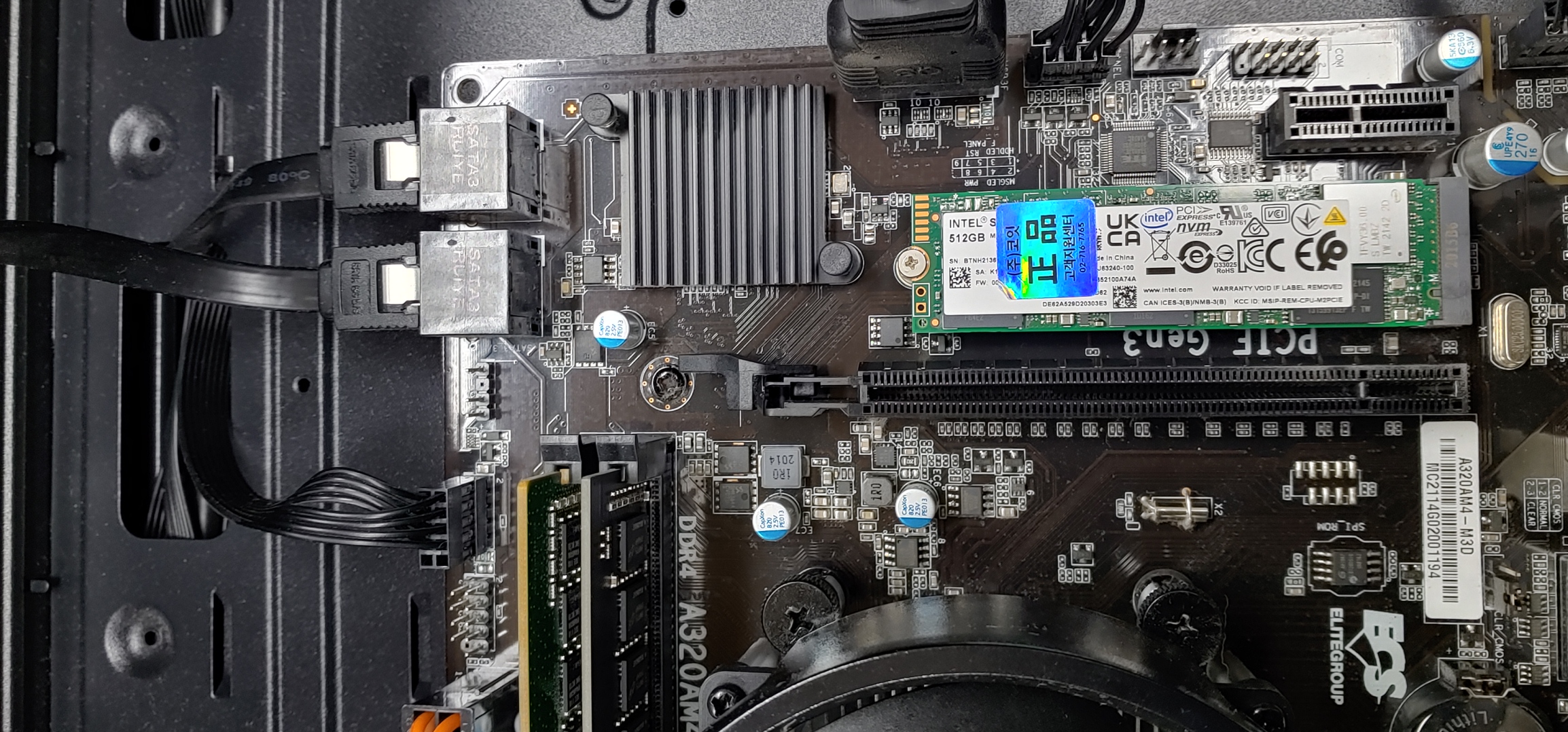 기존 SSD 제거후에 인텔 m.2 Nvme 512를 장착하고 조립합니다.