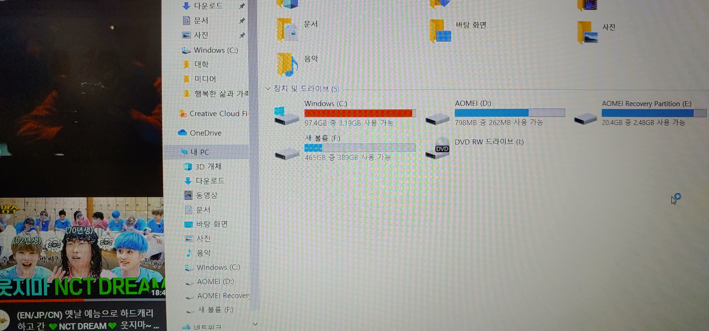 SSD용량이 풀로 사용상태시고 일반HDD 는