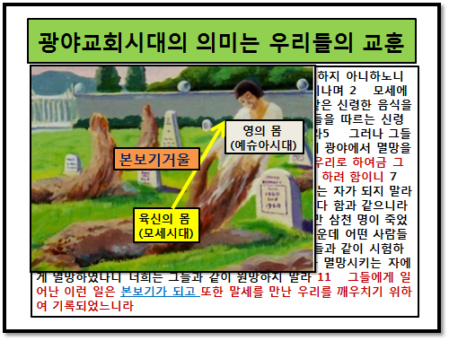 오늘 주어진 말씀을 통하여서 광야시대의 40년과 기독교 2000년의 역사를 비교하시면서 우리들의 영적인 좌표가 어디쯤 와 있는지를 가늠하시기를 바랍니다. 더불어서 마지막시대를 대표하는 라오디게아 교회의 특성은 차지도 않고 그렇다고 뜨겁지도 않은 미지근한 신앙이라고 합니다. 이는 마치 엘리야시대에 갈멜산에서 엘리야선지자가 바알선지자들과 결투를 벌릴때 이편도 아니고 저쪽편도 아닌 우왕좌왕하는 백성들의 모습과 닮은꼴인 것입니다. 그러나 성령님께서는 반드시 어느 한쪽에 속해 있기를 원하시고 또한 결단을 요구하십니다. 그리고 올바른 진리의 길은 항상 좁고 협착한곳에 있다고 말씀하십니다. 비록 어렵고 힘이 들지만 성령님의 인도하심 따라 좁은길, 주님께서 걸어가신 십자가의 길을 가시기를 소망합니다. 그리하여 우리 신앙의 인생길에 후회함이 없는 삶을 살아가시기를 주님의 이름으로 축원드립니다.