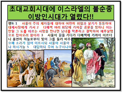 말씀: 행9:1-19 “이방인시대를 위하여 준비된 바울사도”