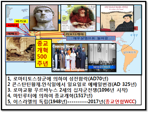 요즈음 뉴스를 보니 베리칩을 공식적으로 삽입하려는 움직임이 IT회사를 중심으로 일어나는 것 같습니다. 동시에 성전산이 있는 예루살렘에서는 이스라엘과 아랍진영의 영적감정이 극도로 악화되어가고 있는 것을 보게됩니다. 1948년 에 이스라엘의 독립이래로 양쪽의 충돌은 점점 더 커지는데 아무래도 주님께서 오시기전에는 해결이 불가능 할 것으로 보입니다. 이럴 즈음에 이방인시대가 마무리되어가는 과정에서 저와 여러분들이 어떤 신앙관으로 주님을 영접할 준비를 해야하는가?...... 하는 문제들을 오늘 주어진 말씀을 통하여 성령님의 이끌림을 받으시는 축복이 있기를 소망합니다.