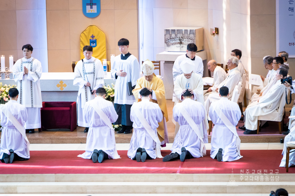 이날 서품식을 통해 부제 9명이 사제로 서품을 받았으며, 대전교구 사제는 391명(주교 포함)이 됐다. 교구장 유흥식 주교님과 총대리 김종수 주교님, 교구 사제단의 공동 집전으로 봉헌된 이번 사제서품식은 2,000여 명의 수도자와 교우가 참석했다.