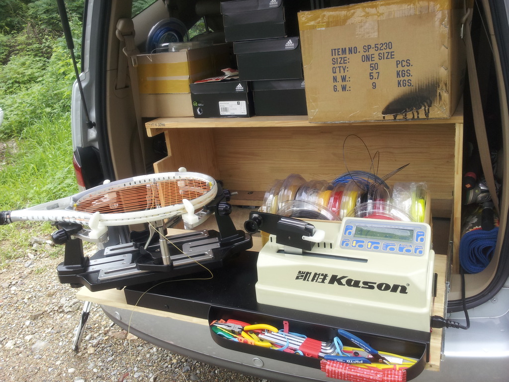 테니스,배드민턴 스트링 수리를 이동식 차량에 설치하여 빠른 스트링작업에 동호인들의 만족을 드리고 있습니다.