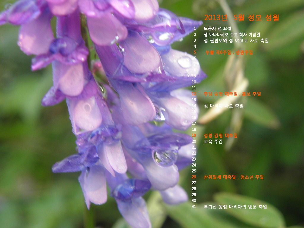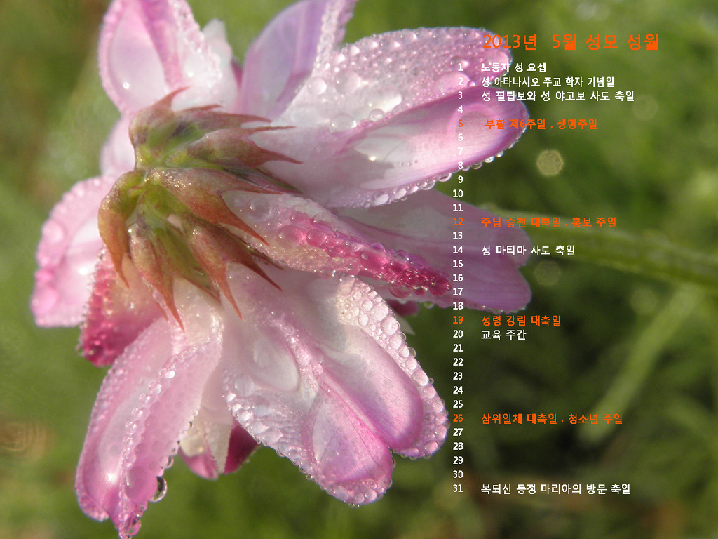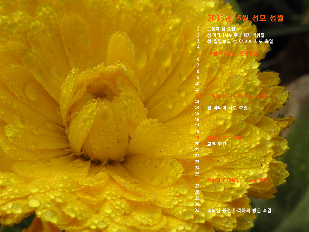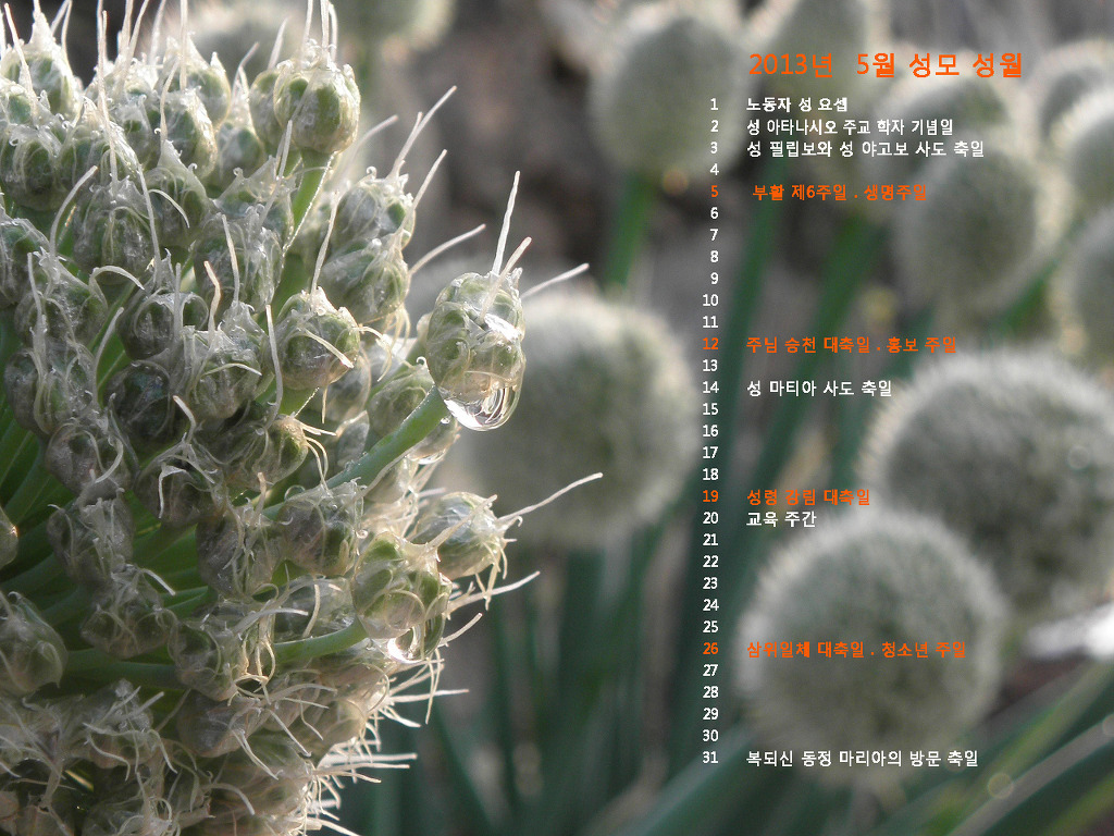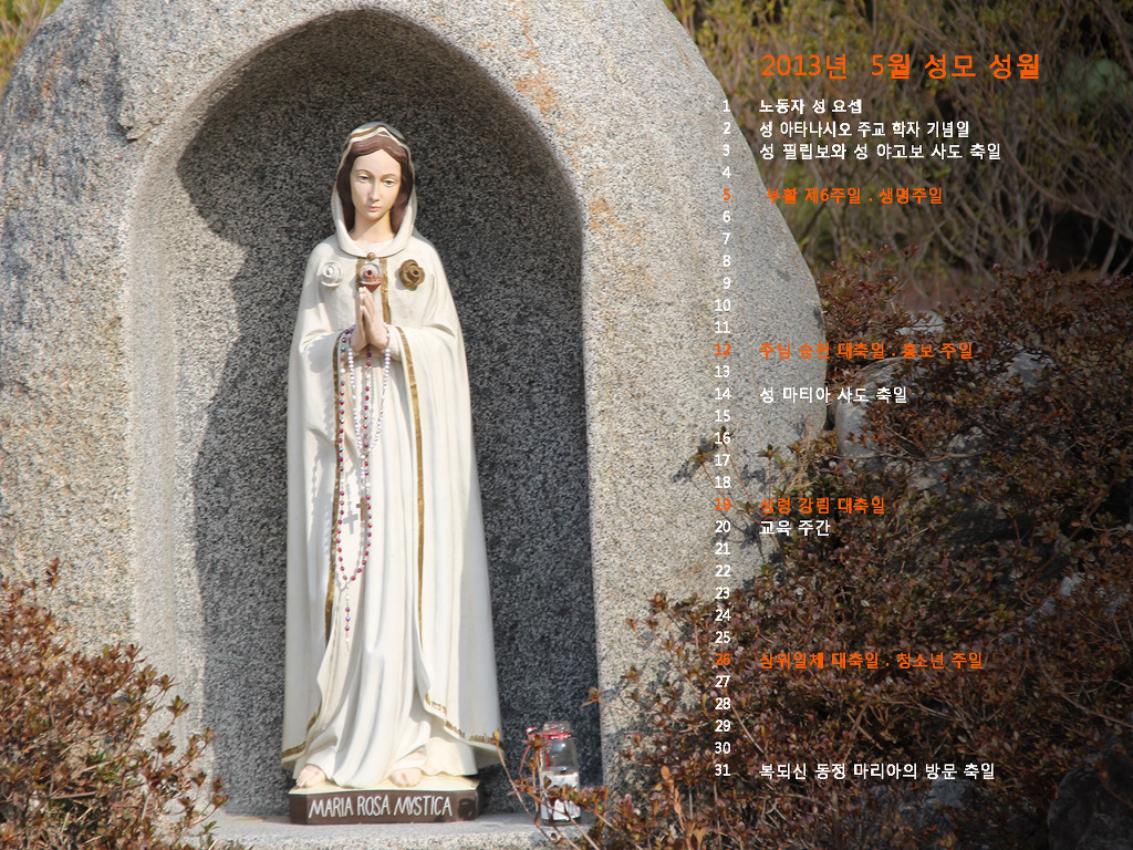 2013년 5월의 전례력이 들어있는 바탕화면입니다. 작성자조경선 베로니카|작성시간13.04.30|조회수59 목록 댓글 0 글자크기 작게가 글자크기 크게가 2013년 5월의 전례력이 들어있는 바탕화면입니다. *아래의 몇 가지 중 마음에 드는 것을 골라, 그림 위에 마우스를 놓고 오른쪽을 누르신 후, "배경으로 지정"을 누르시면 배경화면으로 바뀌게 됩니다 다음검색 현재 게시글 추가 기능 열기 북마크 공유하기 신고 센터로 신고 댓글 댓글 0 댓글쓰기 답글쓰기 댓글 리스트
