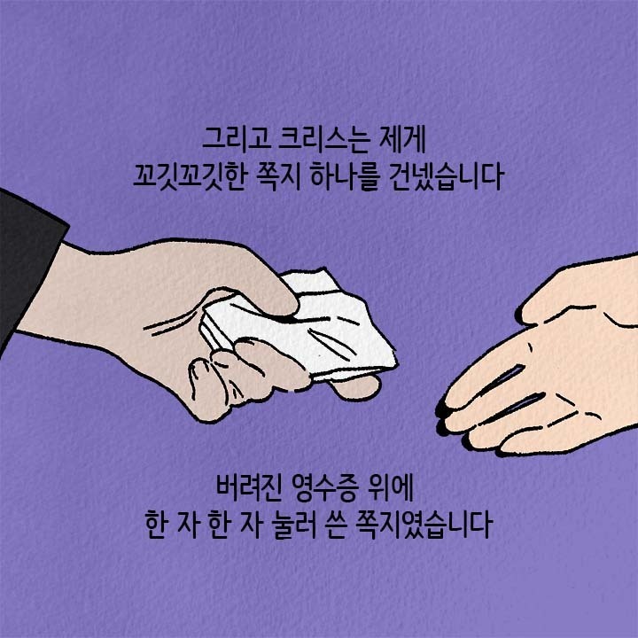 [스크랩] [유머]친절의 의미 작성시간24.06.03|조회수14 목록 댓글 0 글자크기 작게가 글자크기 크게가 * 구걸하던 노숙자에게 음식을 사준 여대생이 받은 쪽지 " Kizomba dance - Help me make it through the night" 다음검색 스크랩 원문 : ♣ 이동활의 음악정원 ♣ 현재 게시글 추가 기능 열기 북마크 신고 센터로 신고 댓글 댓글 0 댓글쓰기 답글쓰기 댓글 리스트