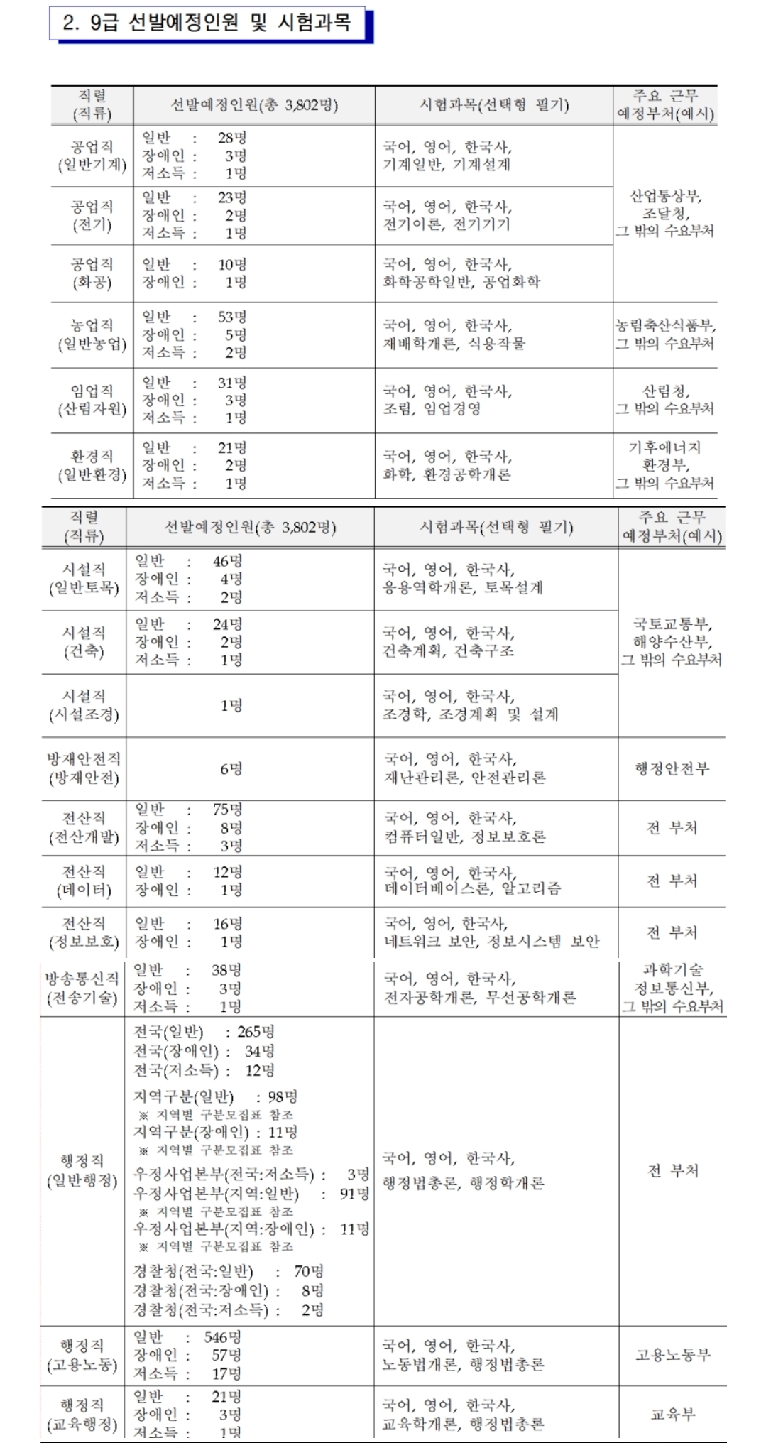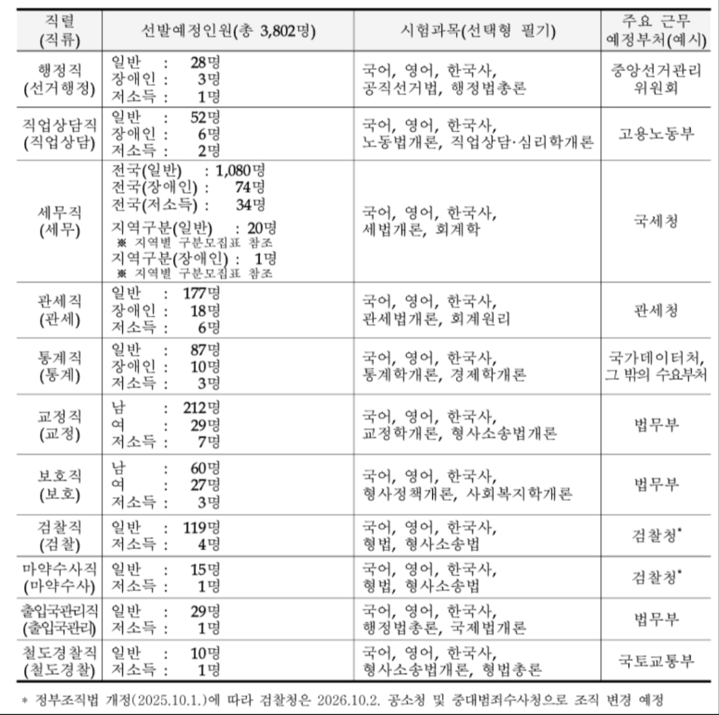 [[공지]]2026년도 국가공무원 공개경쟁채용시험등 계획 공고 작성자백광훈교수님조교|작성시간26.01.02|조회수655 목록 댓글 2 글자크기 작게가 글자크기 크게가 안녕하세요. 국가공무원 공개경쟁채용시험 선발인원입니다. 다음검색 현재 게시글 추가 기능 열기 북마크 공유하기 신고 센터로 신고 댓글 댓글 2 댓글쓰기 답글쓰기 댓글 리스트 작성자검찰토영 | 작성시간 26.01.02 조교님 본문에 검찰직 부분이 잘려있습니다!! 선발인원이 반토막 나버렸네요... 119명 실화인가요🙂↕️ 이미지 확대 작성자영냠냠 | 작성시간 26.01.02 선발인원… 댓글 전체보기