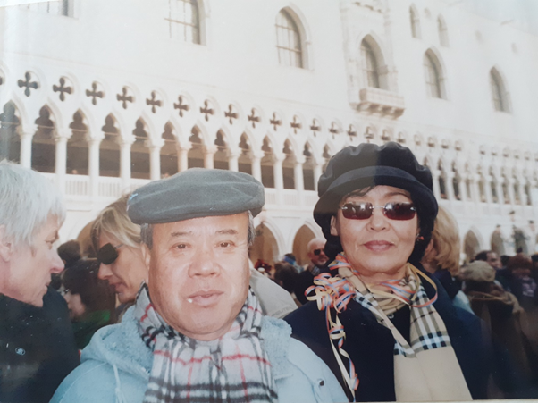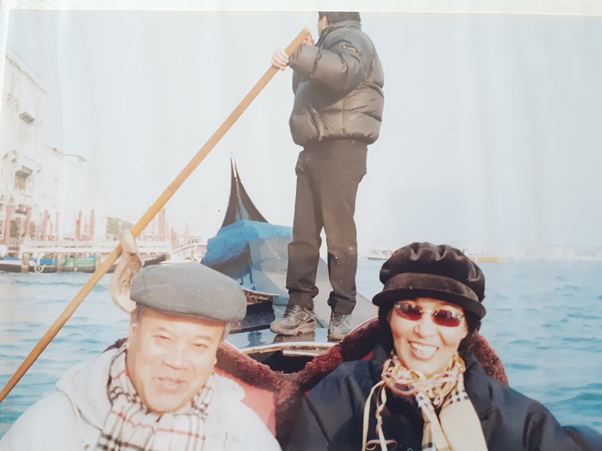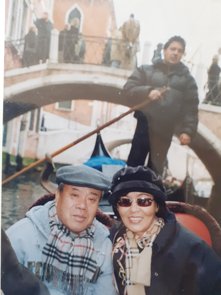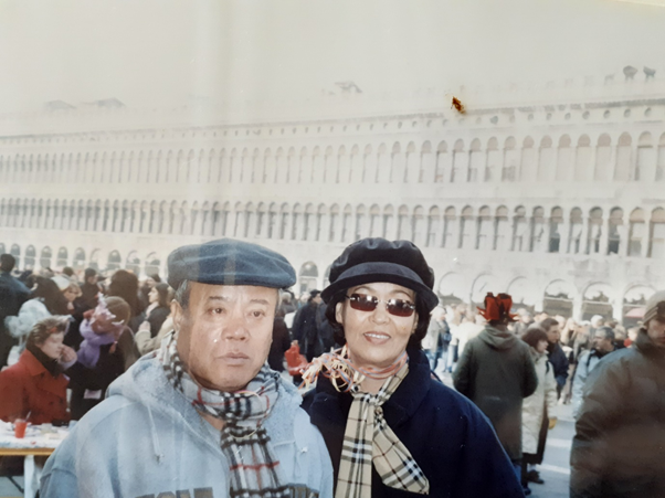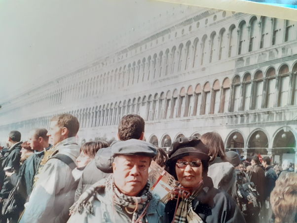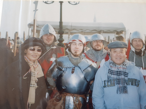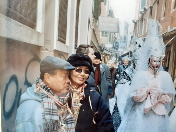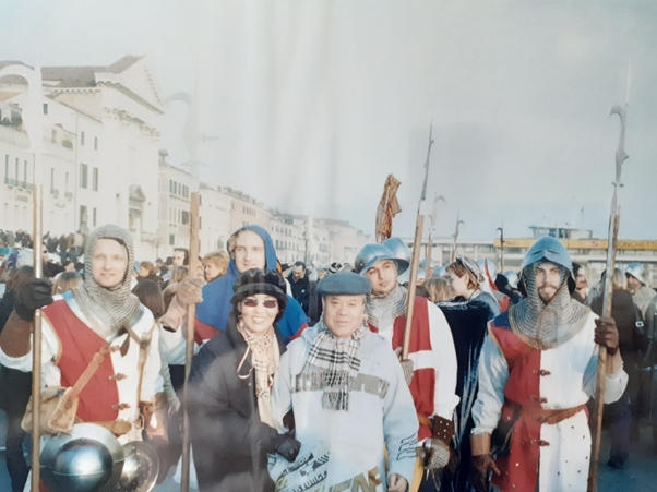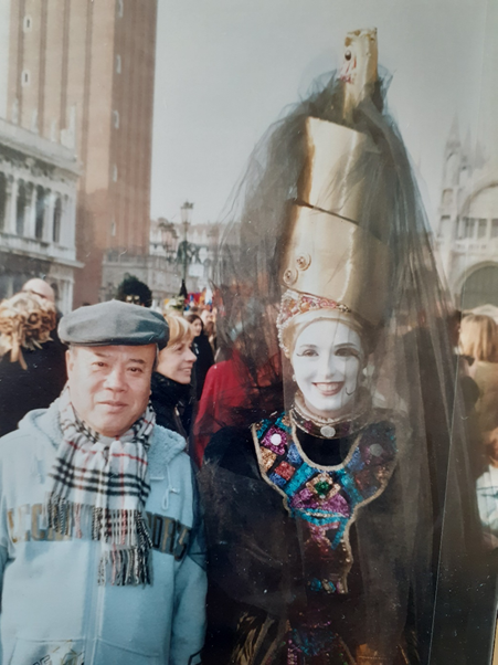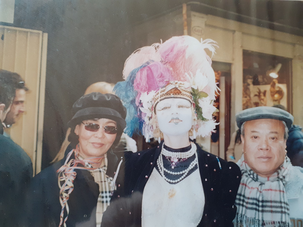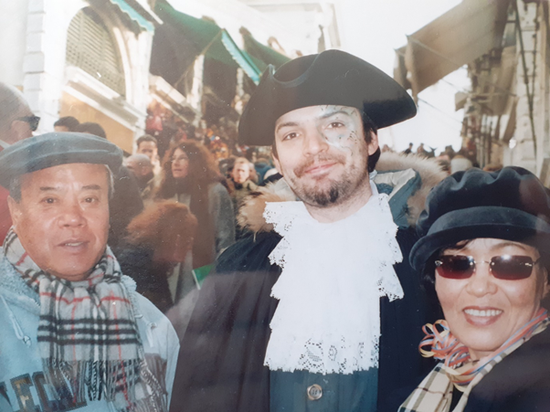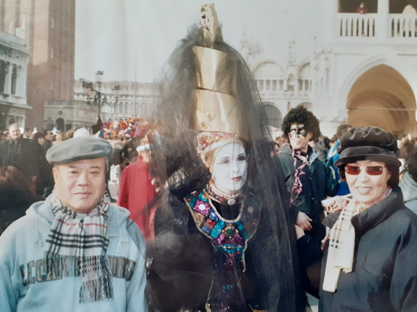 3).베네치아 축제 개막일에 참석한 가면 쓴 외국인과의 사진