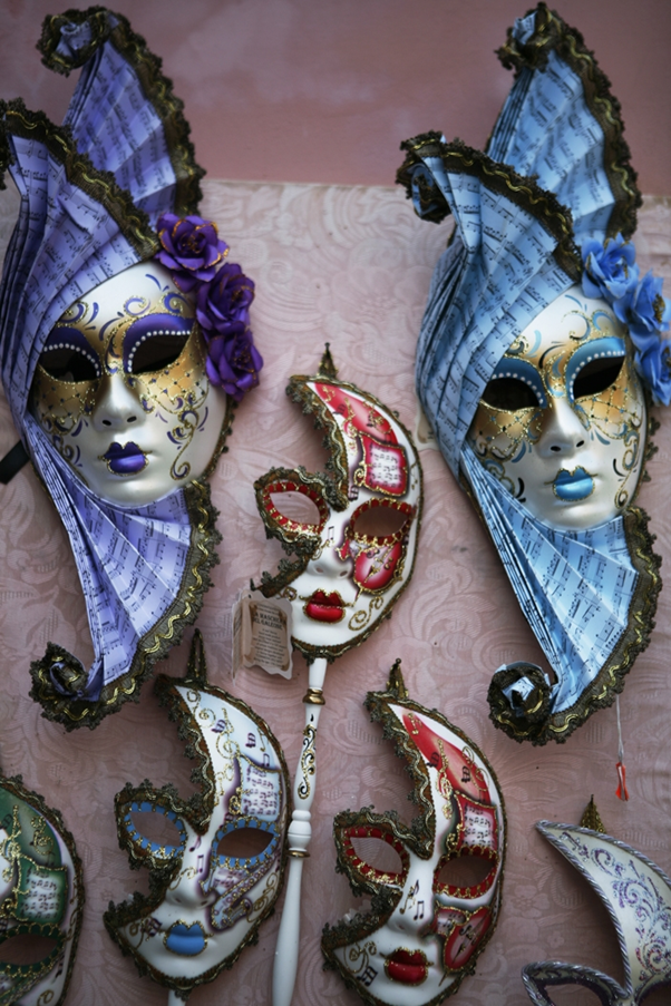 1).:현지들이 직접 만든 베니스 축제용 가면 상점 앞에서