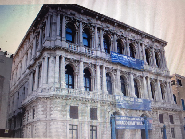 이곳은 운송업으로 부를 축적한 공무원 페사로가 17, 18세기에 건축한 바로크 양식의 <카 페사로 궁전>의 모습으로 현재는 2,3층은 현대미술관으로, 4층은 동양미술관으로 사용하고 있다. 이 카 페사로 (Cà Pesaro)는 운송업으로 부를 축적한 행정관 페사로가 17,18세기에 세운 바로크 양식의 건축물로 기둥이 많아 우아한 모습이 운하에 비추어 아름답다.
