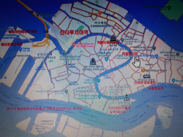 2) 베네치아 산마르코 위치, 가는 해상지도