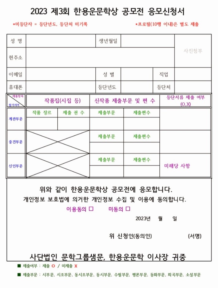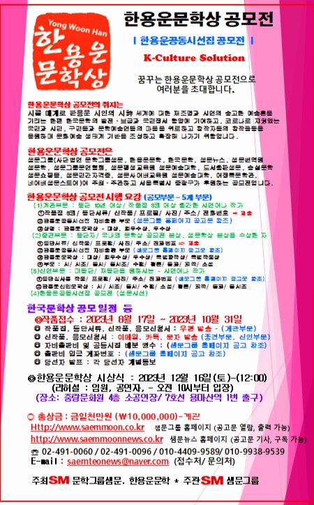 [샘문뉴스]= 2023 제3회 한용운문학상 공모전 시행 공고문 - http://m.saemmoonnews.co.kr/1151