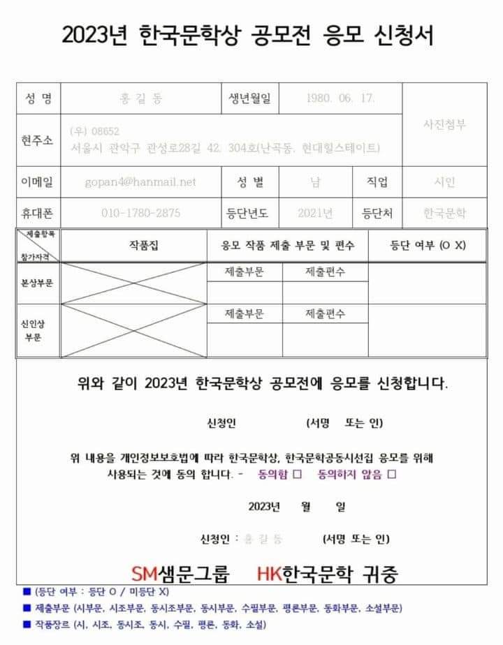 ■2023 한국문학상 공모전 시행 공고■ - 한국문학 주최, 문학그룹샘문 주관 - http://m.saemmoonnews.co.kr/1115