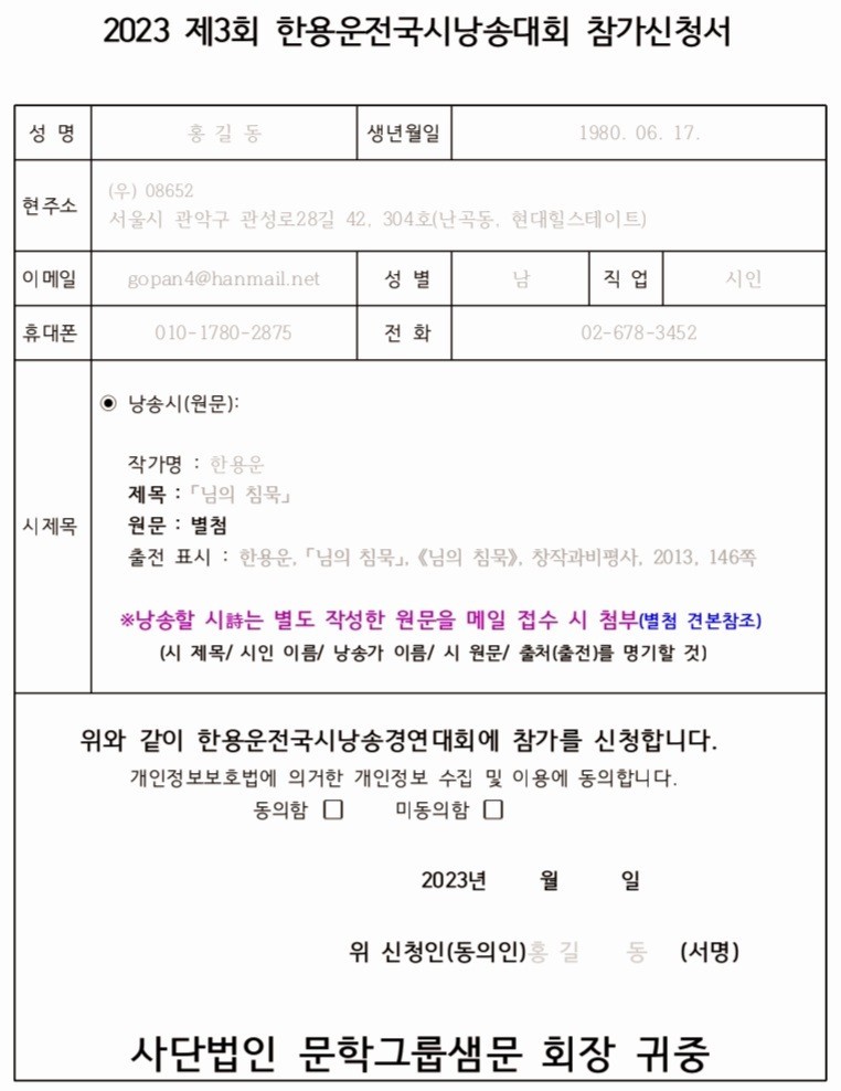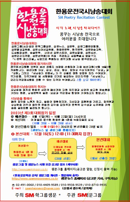 [샘문뉴스]= ■2023 제3회 한용운전국 시낭송대회 시행공고 - http://m.saemmoonnews.co.kr/1152