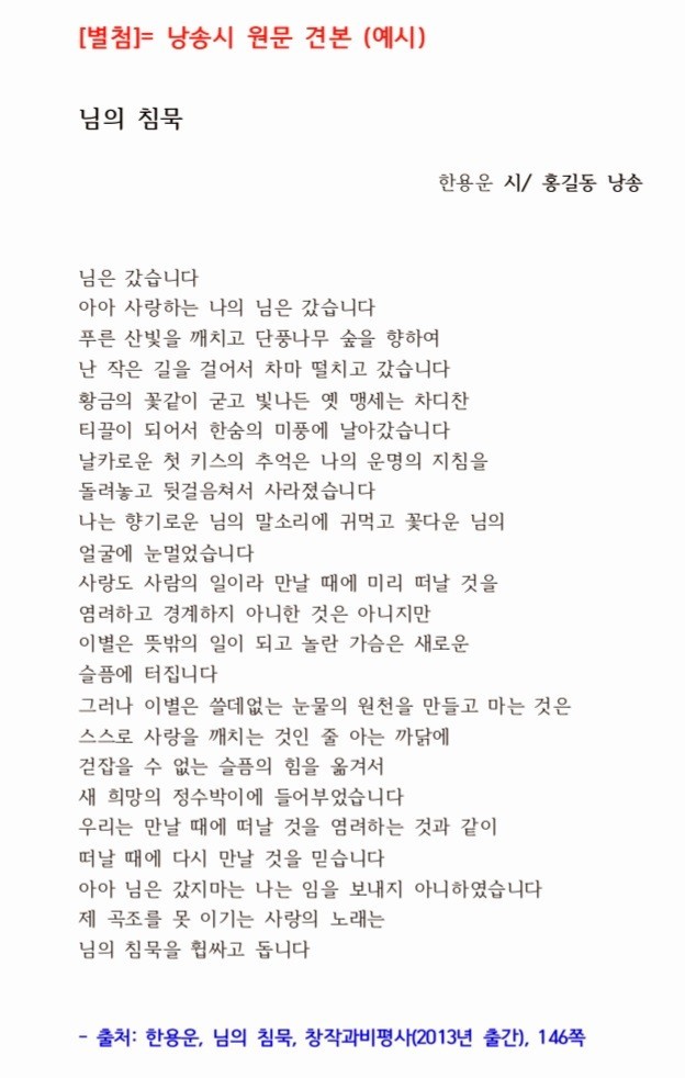 한용운전국시낭송대회를 시행합니다.