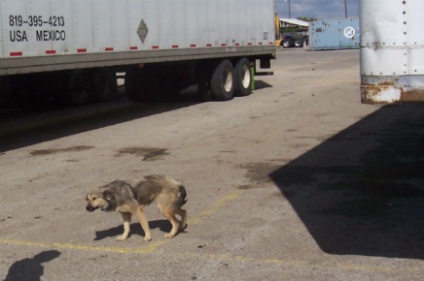 틀림없이 주인에게서 버려진 유기견일 가능성이 크다. 그냥 가까운 동네에서 놀러 나온 개일 수도 있고 길 잃은 개 일 수도 있다. 유일하게 눈에 띄는 것은 마치 텍사스의 개라는 것을 인증이라도 하듯 파란 스카프를 목에 두르고 있다는 점이다. 파란 스카프 외에는 특별할 것도 없는 초라하고 지저분한 개다.