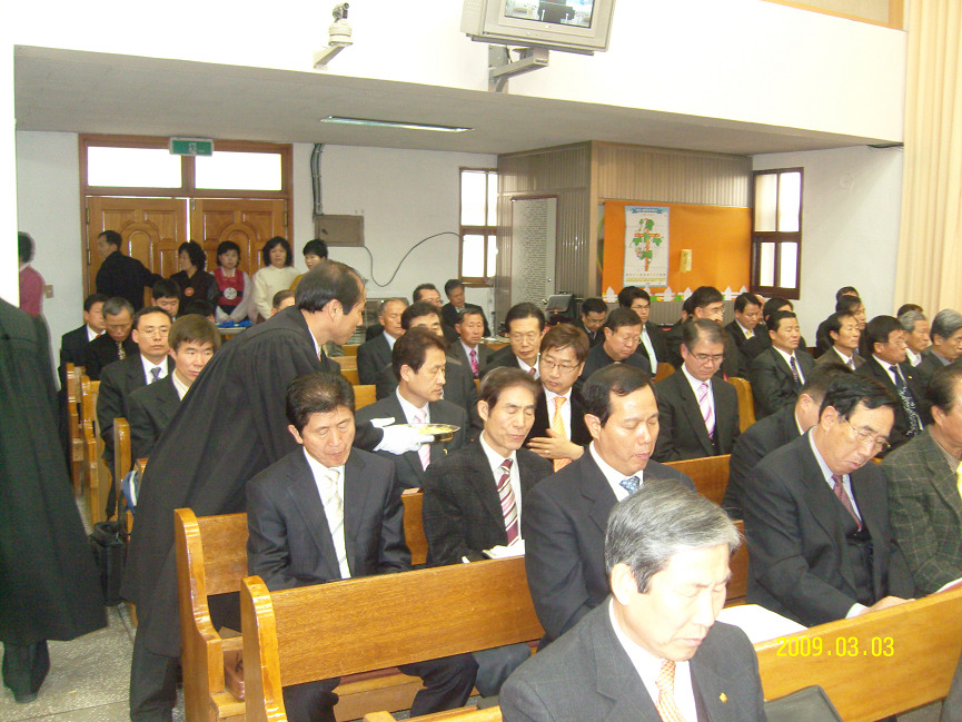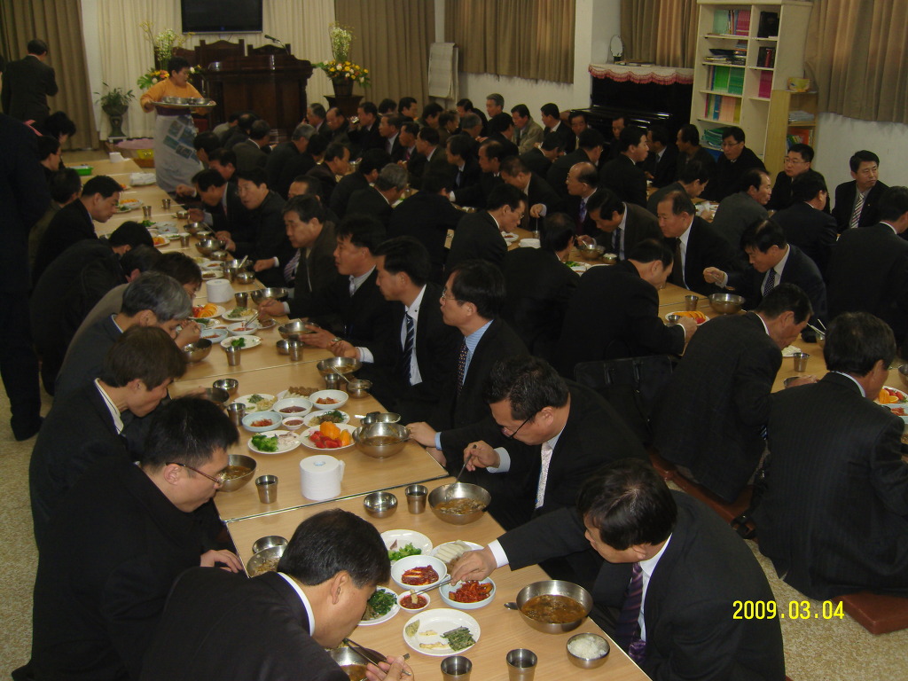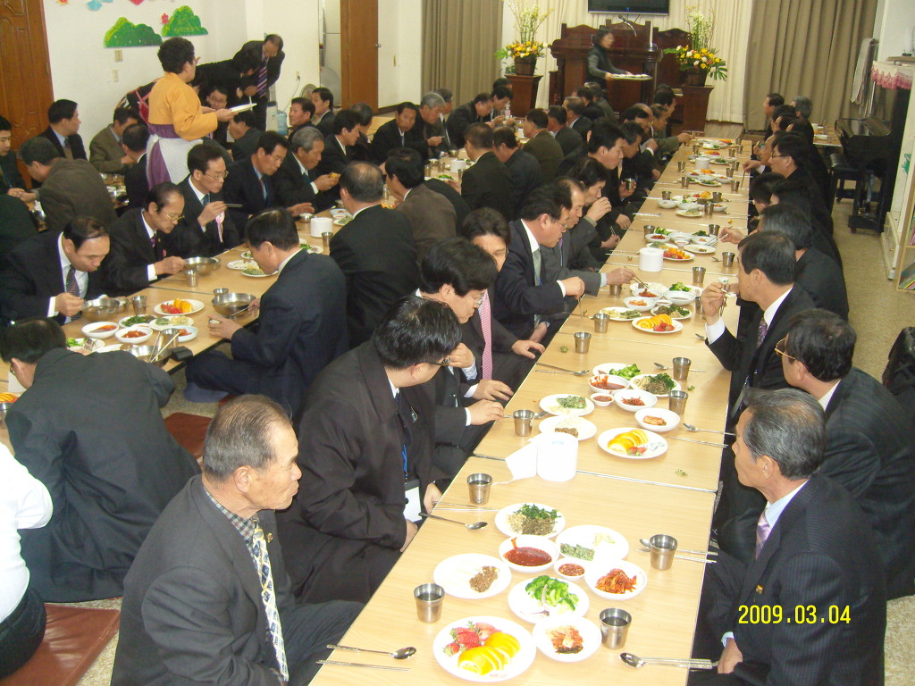 노회개최장소인 점촌신흥교회 당회원 인사 및 점심식사 접대
