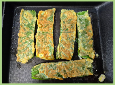 달걀물에 적신 다음~