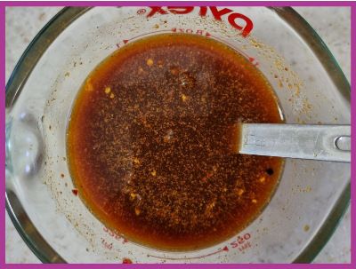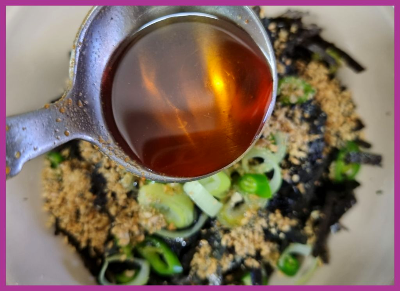 생수 180ml, 간장 2T, 간 깨 1.5T, 들기름 2T