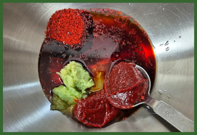 양념재료:간장 1T, 고춧가루 1T, 고추장 2T, 다진마늘 1T, 청주 1T