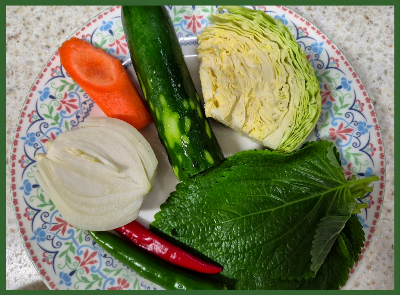 양배추, 양파, 당근, 오이, 깻잎, 청양고추, 홍고추를 준비~