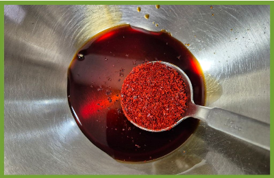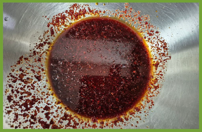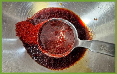 볼에 간장과 고춧가루,