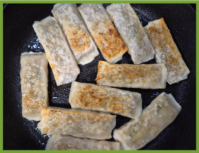 포도씨유를 약간 두른 팬에 만두를 올린 후~