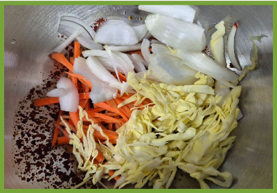 양배추, 당근, 양파는 채썰기~