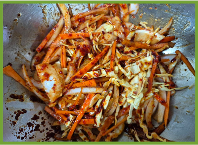 양념소스에 양배추와 당근, 양파를 담아~