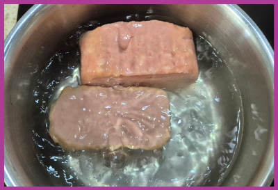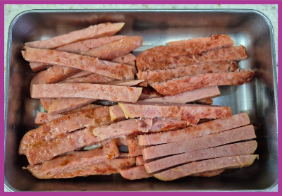 끓는물에 데친 햄은~