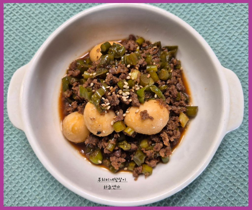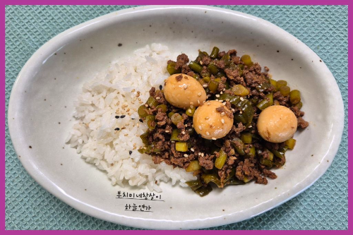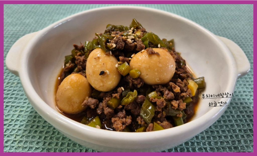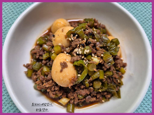 재료:한우 다짐육 588g, 마늘종 200g, 꽈리고추 145g