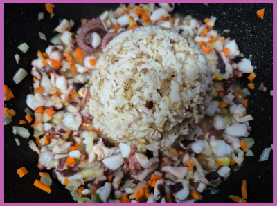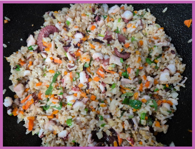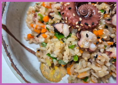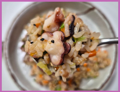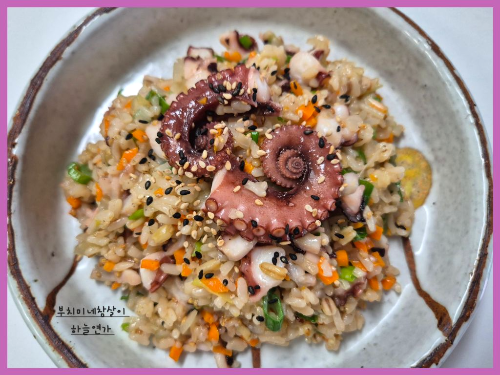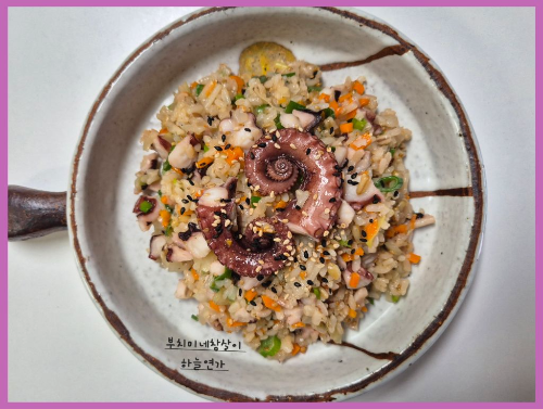 그릇에 담아 내면 맛있는 버터 문어 볶음밥이 완성입니다.