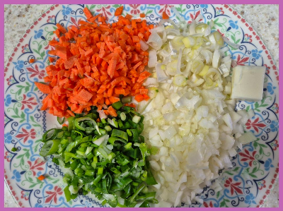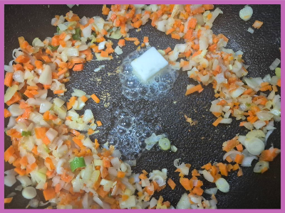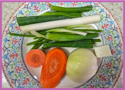양파, 버터, 자투리 당근과 쪽파, 대파와~