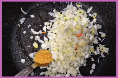 식용유를 약간 두른 팬에 양파와 대파 흰부분과