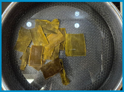 10분 정도를 팔팔 끓인 후 다시마를 건져낸 다음~