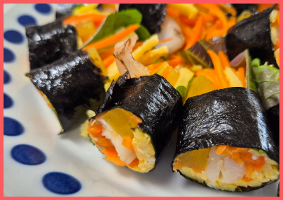 한 입에 쏙쏙~맛있는 새우 키토 김밥입니다.