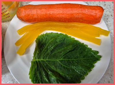 깻잎은 반으로, 단무지는 3등분으로 썰기~
