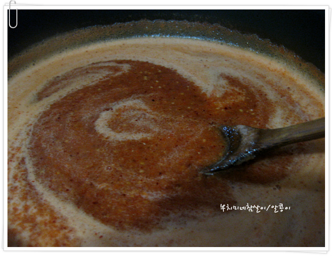 눌러붙지 않도록 중간 중간 저어주면서 어느정도 졸여지면