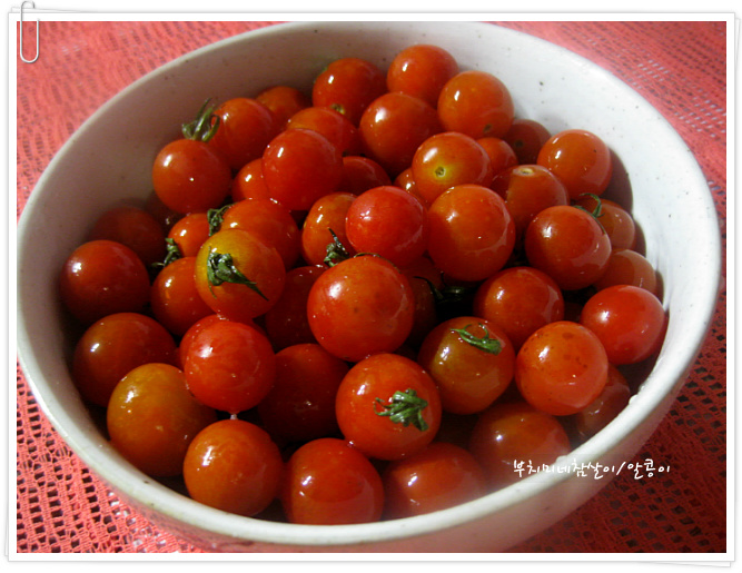 산자락 텃밭에서 따온 방울토마토가 냉장고 차지를 하고 있길래