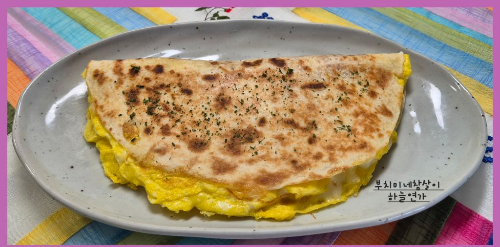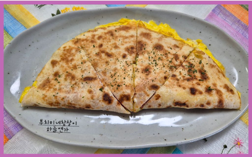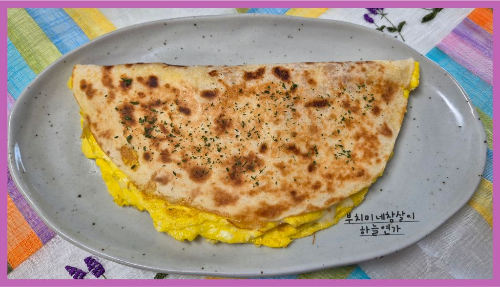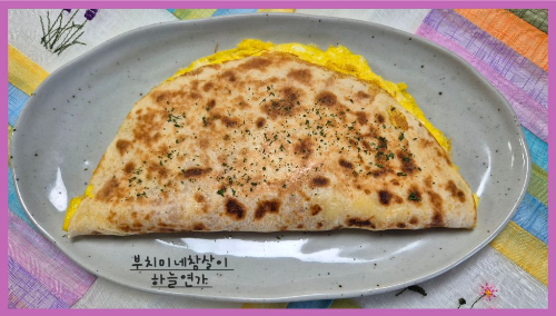 달걀물을 담아서 또띠아 크기로 동그랗게 만든 후~