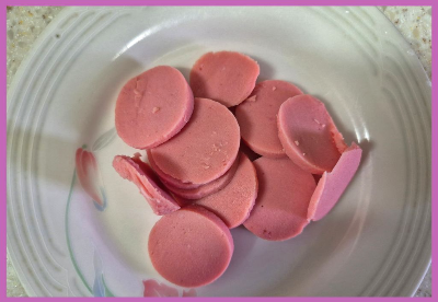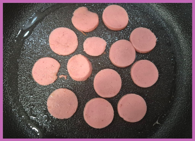 약간의 포도씨유를 두른 팬에 소시지를 올리고~
