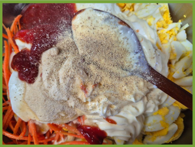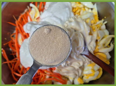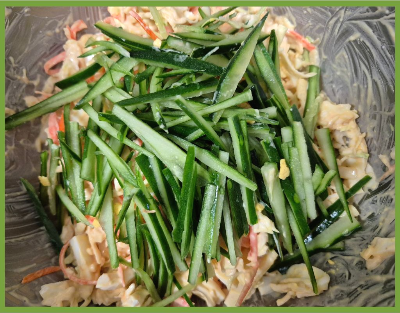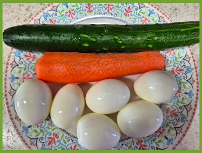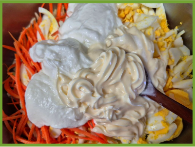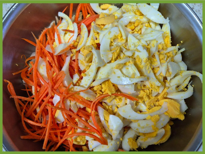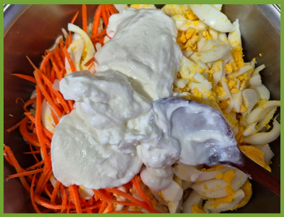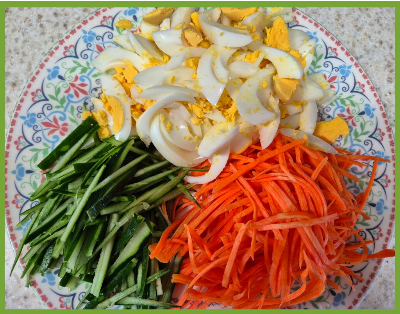 재료:양배추 440g, 당근 87g, 오이 1개, 삶은 달걀 6개, 그릭요거트 180g