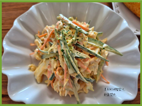 그릇에 담아 내면 맛있는 야채 샐러드가 완성입니다.