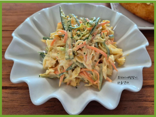 그릇에 담아 내면 맛있는 야채 사라다빵이 완성입니다.