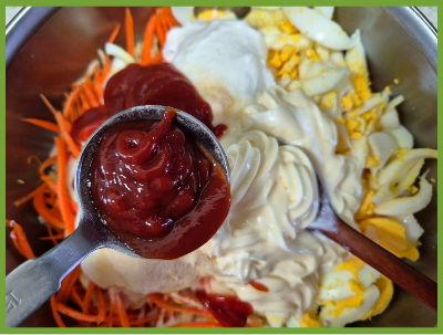 마요네즈 4T, 자일로스 설탕 1T, 케첩 3T, 백후춧가루 톡톡, 파슬리가루 약간