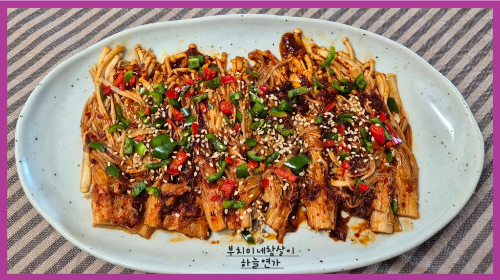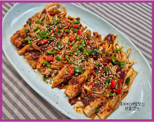 맛있는 매콤 팽이버섯 조림이 완성입니다.
