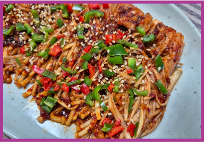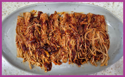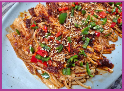 쫄깃쫄깃한 식감이 좋은 매콤 팽이버섯 조림입니다.